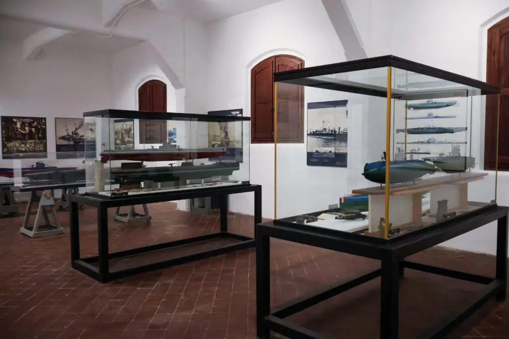 The Gallerion Maritime Collection developed over 40 years as the private collection of Sergio Gobbo, a designer and photographer. It includes 30 larger and 300 smaller models of sailing ships, cruisers, battleships, submarines, and other exhibits.