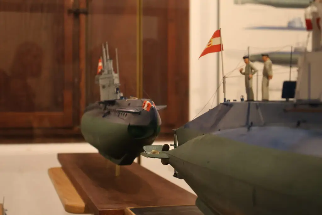 This room explores the Austro-Hungarian naval fleet during the First World War, showcasing the ships, strategies, and people who served at sea. Visitors can see authentic uniforms and caps, illustrating the life and rank of naval officers and sailors. A special section is dedicated to Baron Gautsch, commemorating the 110th anniversary of its sinking, highlighting the story of the ship, its crew, and its place in naval history.